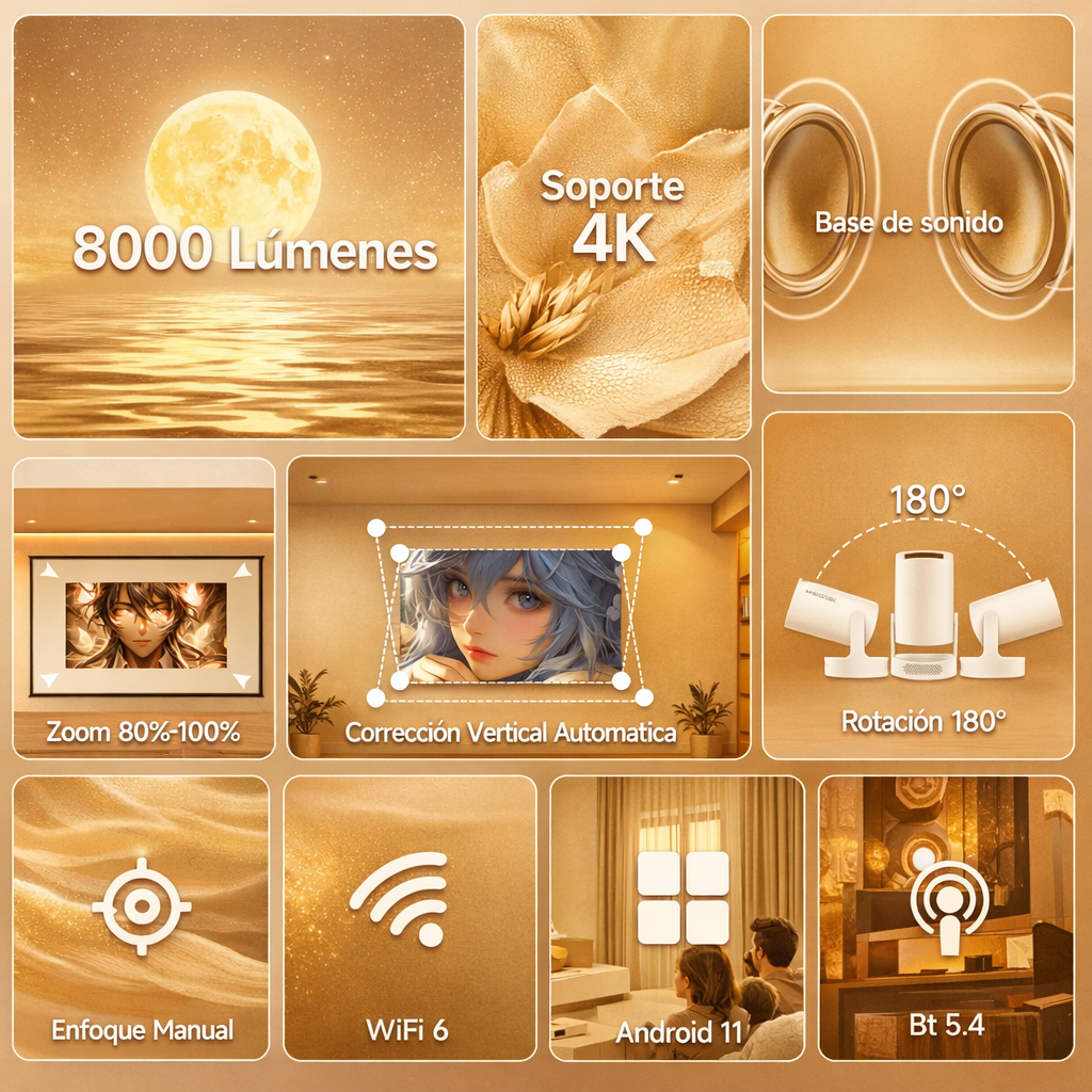 Este proyector no es solo para ver contenidos, es para crear atmósferas inmersivas que transforman una habitación, una pared o un rincón en una experiencia envolvente y memorable.