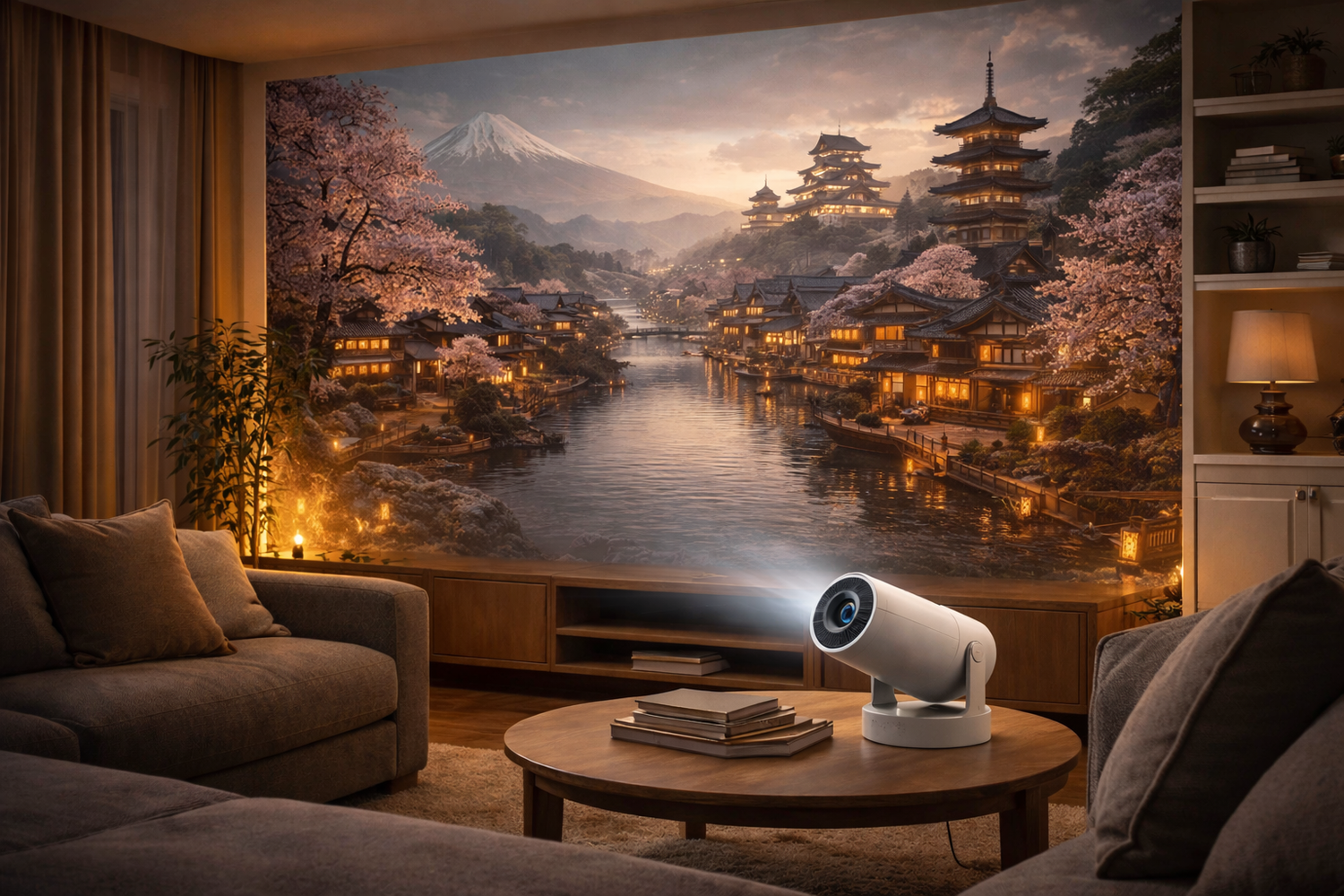 Porque no ocupa espacio visual cuando no se usa y, cuando lo hace, convierte cualquier pared en una experiencia mucho más grande, flexible y personal que una pantalla fija.